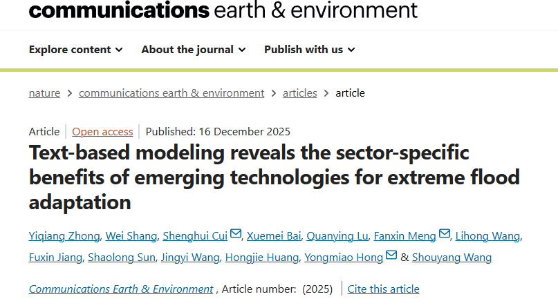 2025年12月16日,北京师范大学孟凡鑫副教授与中国科学院城市环境研究所、中科院数学与系统科学研究院等研究机构联合开展研究,在Nature旗下期刊Communications E...