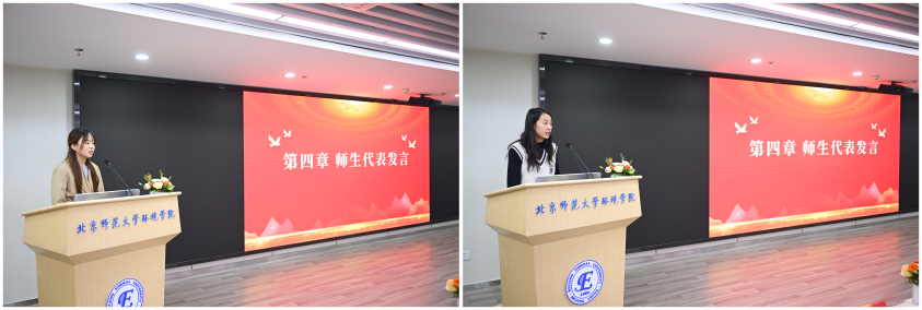 随后,教师代表李安婕、刘瑞民、刘少达三位老师,以及多位学生代表先后发言。他们结合与两位荣退老师共事、求学的亲身经历,分享了那些温暖而难忘的瞬间,从不同视角展现了两位老师严谨治学的态度、温暖热忱的品格,生动诠释了“师者仁心”的深刻内涵。