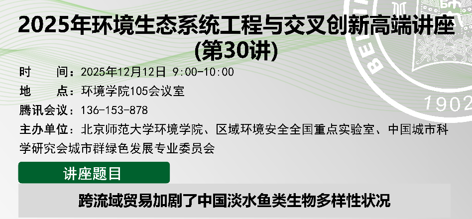 2025年环境生态系统工程与交叉创新高端讲座(第30讲)