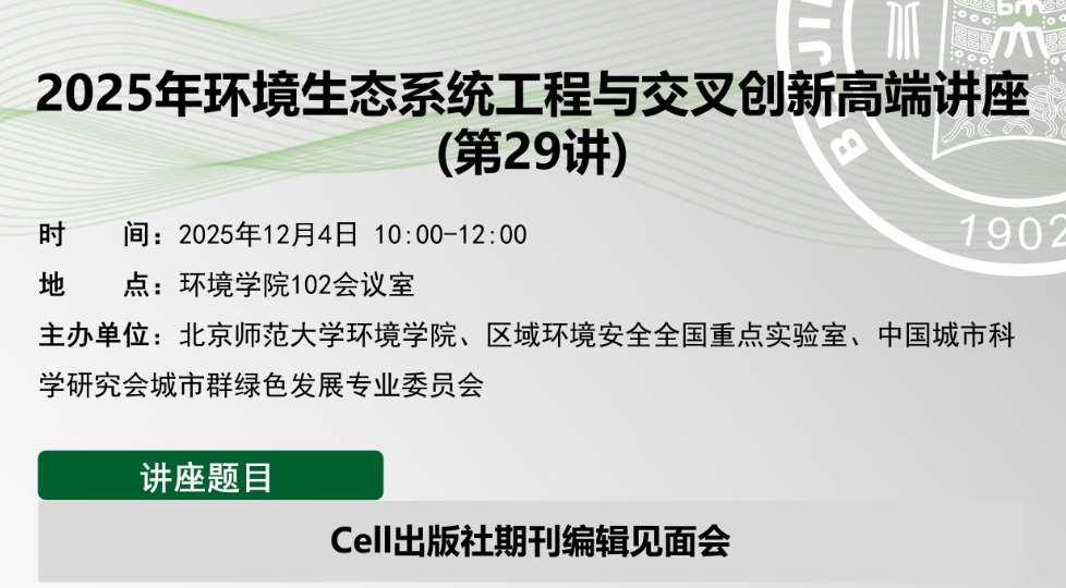 2025年环境生态系统工程与交叉创新高端讲座(第29讲)