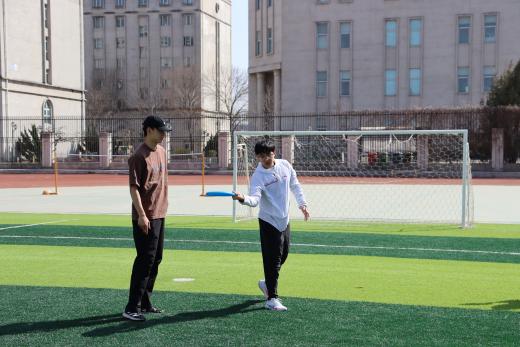 活动伊始,飞盘教练系统讲解了飞盘运动的发展历程,并示范了正手、反手投掷及多种接盘技巧。在场同学认真聆听讲解,积极投入练习,并与教练展开互动,现场气氛热烈有序。通过系统的教学环节,同学们初步掌握了飞盘运动的基本技能,为后续实战环节奠定了良好基础。