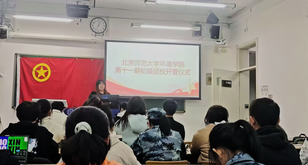 2025 年 10 月 18 日 19:00,北京师范大学环境学院第十一期初级团校开营仪式在教四楼 305 教室正式开幕。环境学院党委副书记李习文,校团委组织部兼职团干哈治同,环境学院团委书记吴启民,环境学院团委副书记金圣杰受邀参加,与全体学员共同见证这一青春时刻。