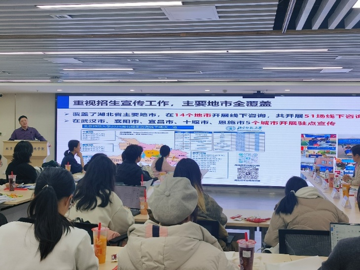 湖北招生宣传组组长冯成洪老师对近年来湖北省的招生工作进行了总结。得益于学校影响力的持续提升及招生宣传工作的精细化开展,我校在湖北省的生源质量稳步提高,优秀学子报考人数持续增多。尤其在今年,我校实现了在湖北省多所优秀学校生源的零突破。这一成果的取得,离不开学校对招生宣传工作的高度重视,也离不开广大湖北籍在校学生、校友在招生宣传中的积极贡献。