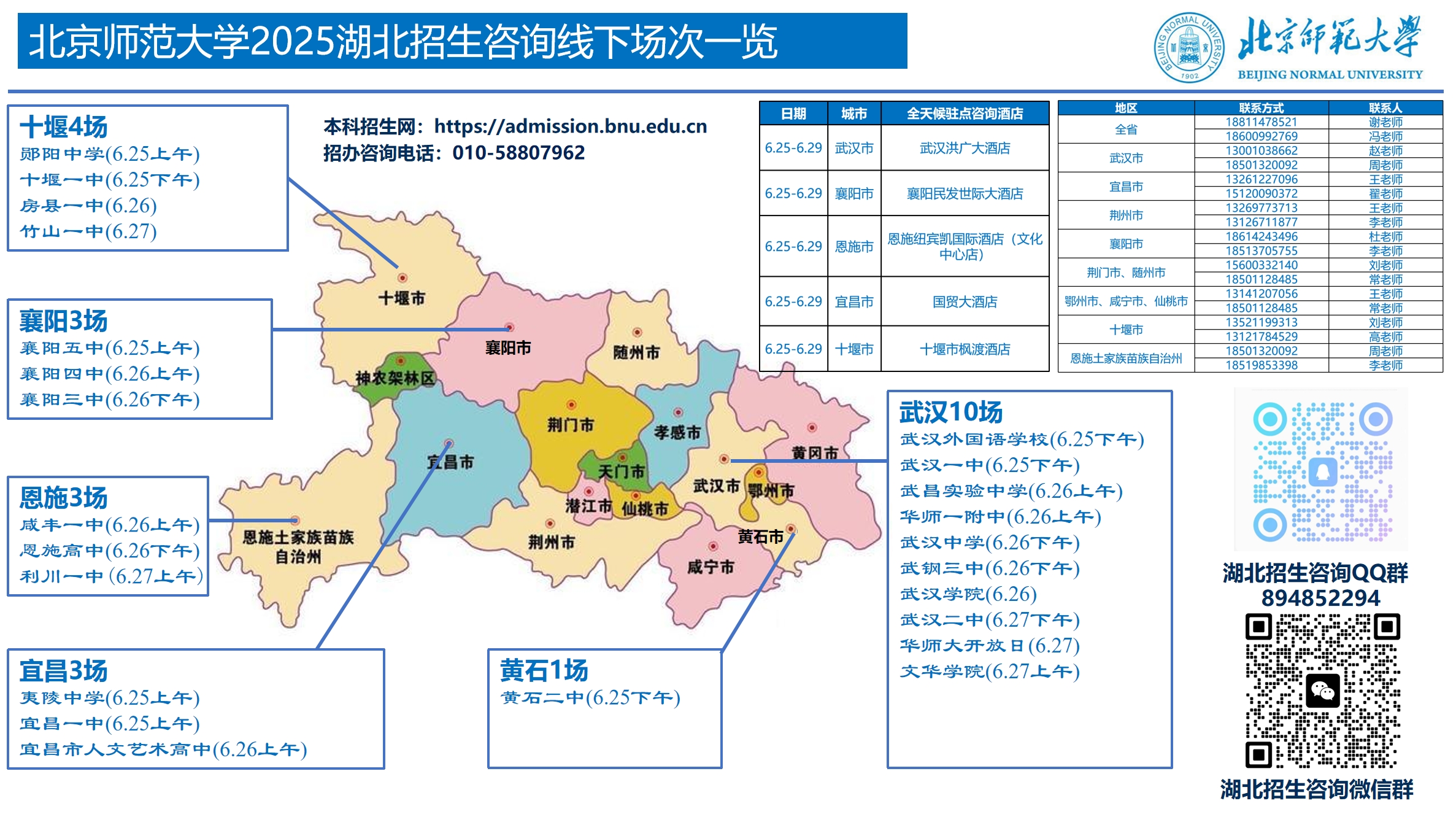 今年,环境学院将进一步强化对考生家长的服务力度,聚焦工作重点、加大宣讲力量。此次派出大量有多年招生宣传经验的教师和学生志愿者去湖北参加22场线下招生咨询会,在覆盖湖北主要城市的基础上,还将在恩施、襄阳、武汉、宜昌、十堰五地设立驻点,接受考生和家长的线下咨询。与此同时,学院全面升级线上服务,设立相关微信群、QQ群和热线电话,全天候为考生和家长答疑解惑,努力实现湖北招生宣传的全覆盖、北师大与考生和家长的零距离。